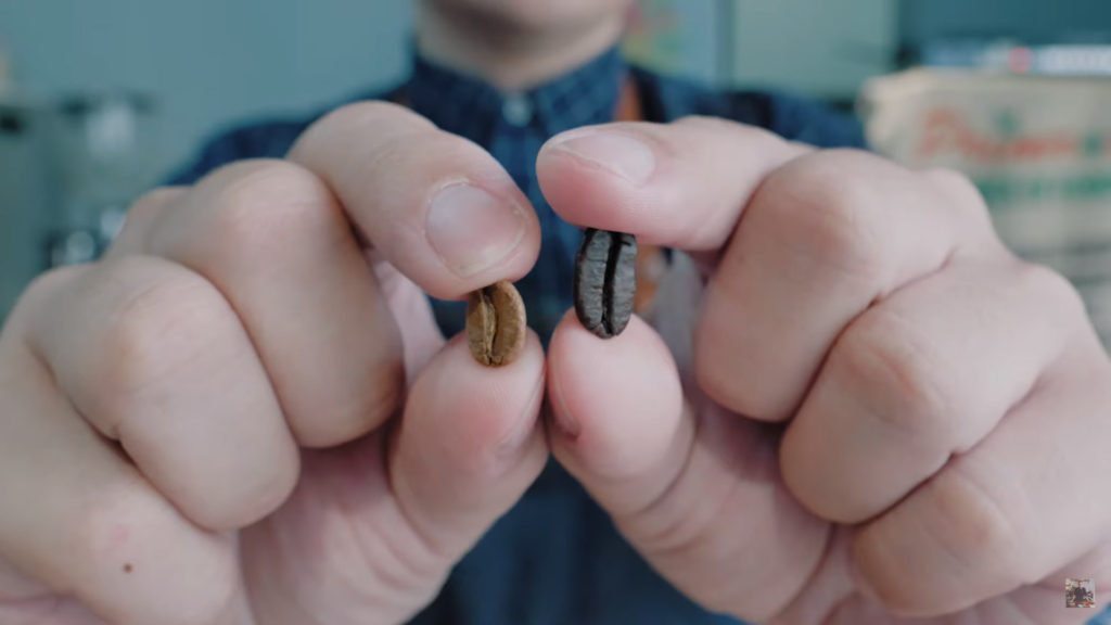 如果今天有兩顆同重量、同品項但大小不一的咖啡豆,我們可以很合理推論:體積小、密度大的咖啡豆是淺焙;體積大、密度小的咖啡豆則是深焙。但需要特別注意的是:不同品項的咖啡豆,不一定代表體積越大密度就一定越小。因為不同品項咖啡豆的含水量和處理法是不同的,所以比較上我們就缺乏統一的數據。
